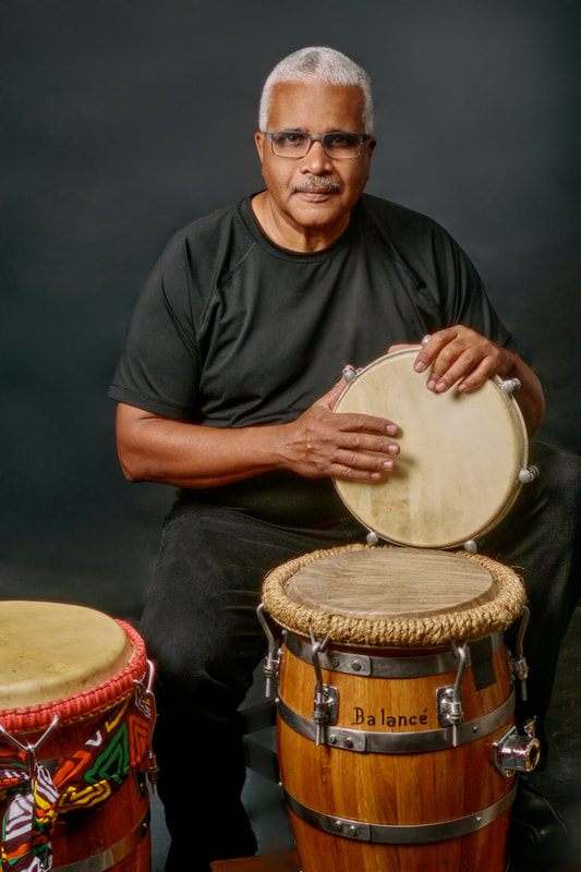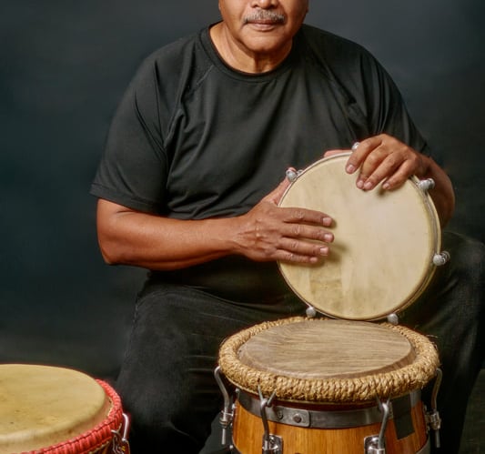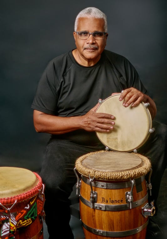 Puerto Rican drummer blending Afro-Caribbean rhythms with Latin jazz, sharing decades of passion and expertise.